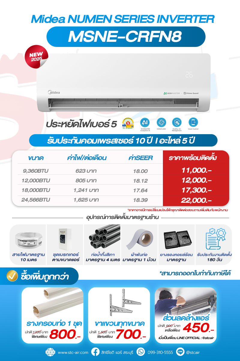แอร์โซล่าเซลล์ MIDEA NUMEN WIFI